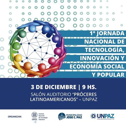 La Universidad Nacional de José C. Paz (UNPAZ), la Municipalidad de José C. Paz y el Instituto Nacional de Tecnología Industrial (INTI) invitan a participar de la Primera Jornada Nacional de Tecnología, Innovación y Economía Social y Popular el Miércoles 3 de diciembre.